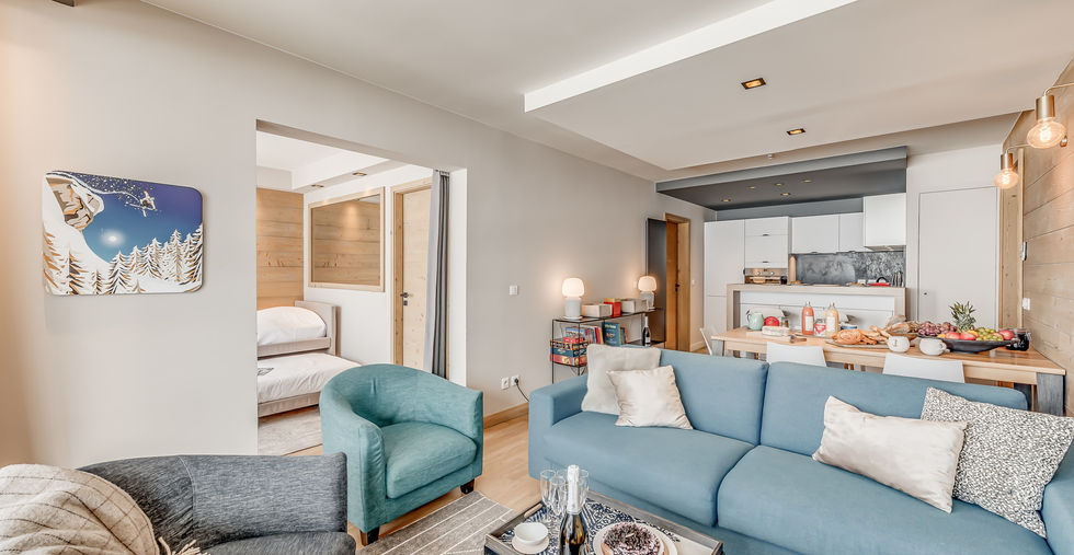 Apartment ASHOKAN is a spacious 75m2 apartment located on the 3rd floor of the residence, with lift access. Three are 2 bedrooms allowing for groups of up to 6 people. The apartment has a large south facing balcony, with beautiful views over the Tignes natural lake, the Tovière massif and the Grande Motte glacier.