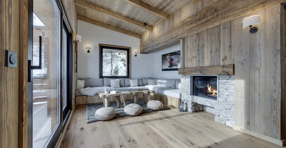 The Martins 4 apartment is located on the top floor of the residence. The 98sqm apartment offers 4 double bedrooms, two of which are ensuite, as well as an independent shower room. The living room includes an open kitchen, a lounge and a dining area on a non-divided plateau, where conviviality takes place around the fireplace. All the spaces have been renovated to a high standard, and have adopted the codes of the current alpine style, based on old wood, grey stone and flannel colours.